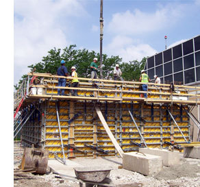Unexpected delays on the job forced contractors to schedule the wall pour for one of the hottest days of the year. “With temperatures in the 90s, we were walking a tightrope,” says Baumgartner. “If we did pour and the heat of hydration exceeded the target, we would have to rip it all out. If we delayed the pour we’d miss our deadline.”
