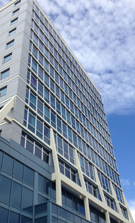 The site for Skyline Towers was extremely small, with the footprint running curb-to-curb and less than 6 inches from neighboring buildings.