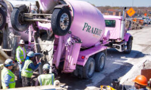 But as Pashup will tell you, 8270 is no regular rig. It’s one of 7 bright pink concrete mixers operating in 3 states – each a rolling symbol of Prairie’s commitment to conquer breast cancer.
